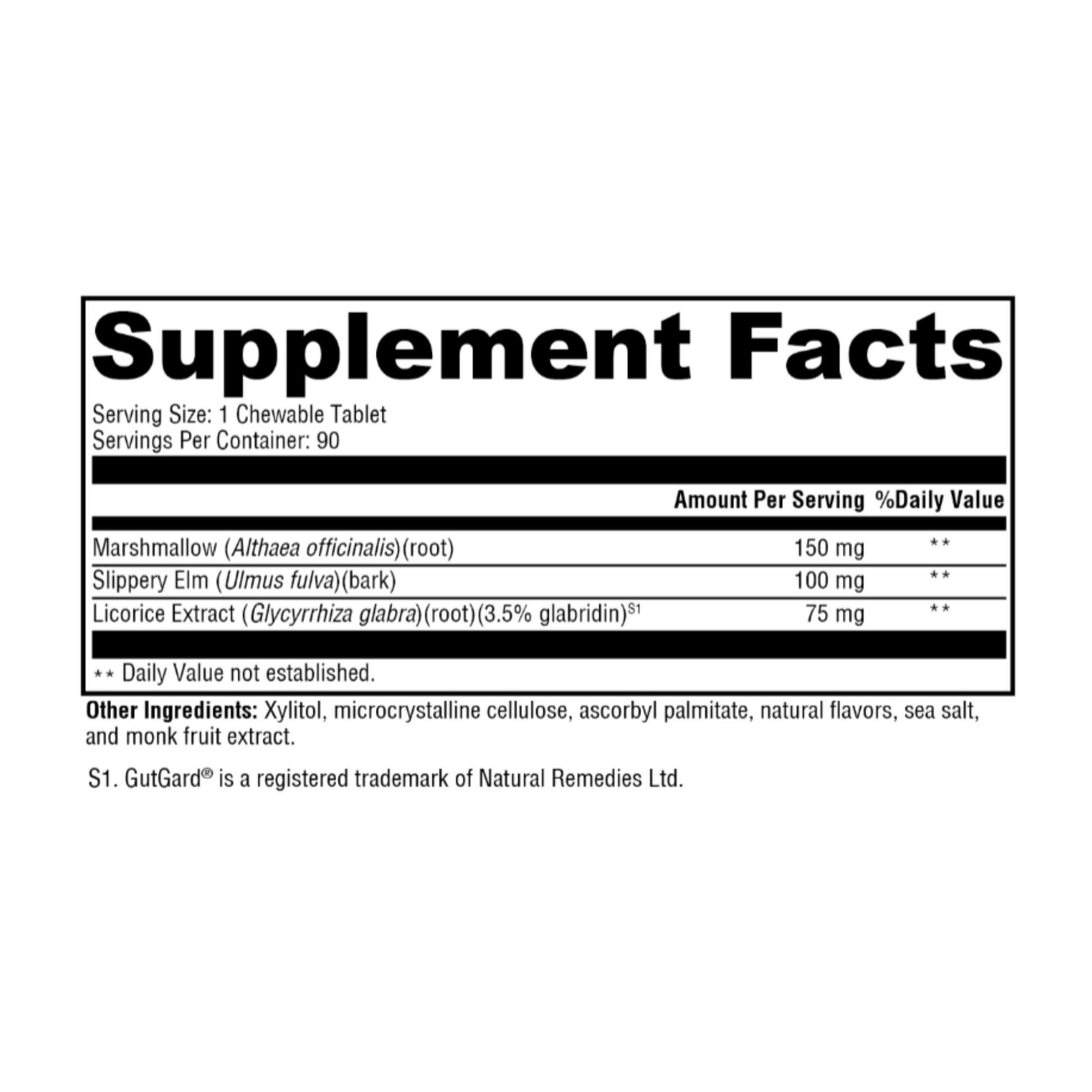 GI Soothe features mucosa-targeting GutGard®—a deglycyrrhizinated licorice—paired with herbs traditionally used for gastrointestinal (GI) wellness. These herbal ingredients help preserve and maintain the mucosal lining and sustain digestive comfort. GI Soothe is a preventive, protective supplement for individuals exposed to irritating factors that may induce mild GI symptomatology.*