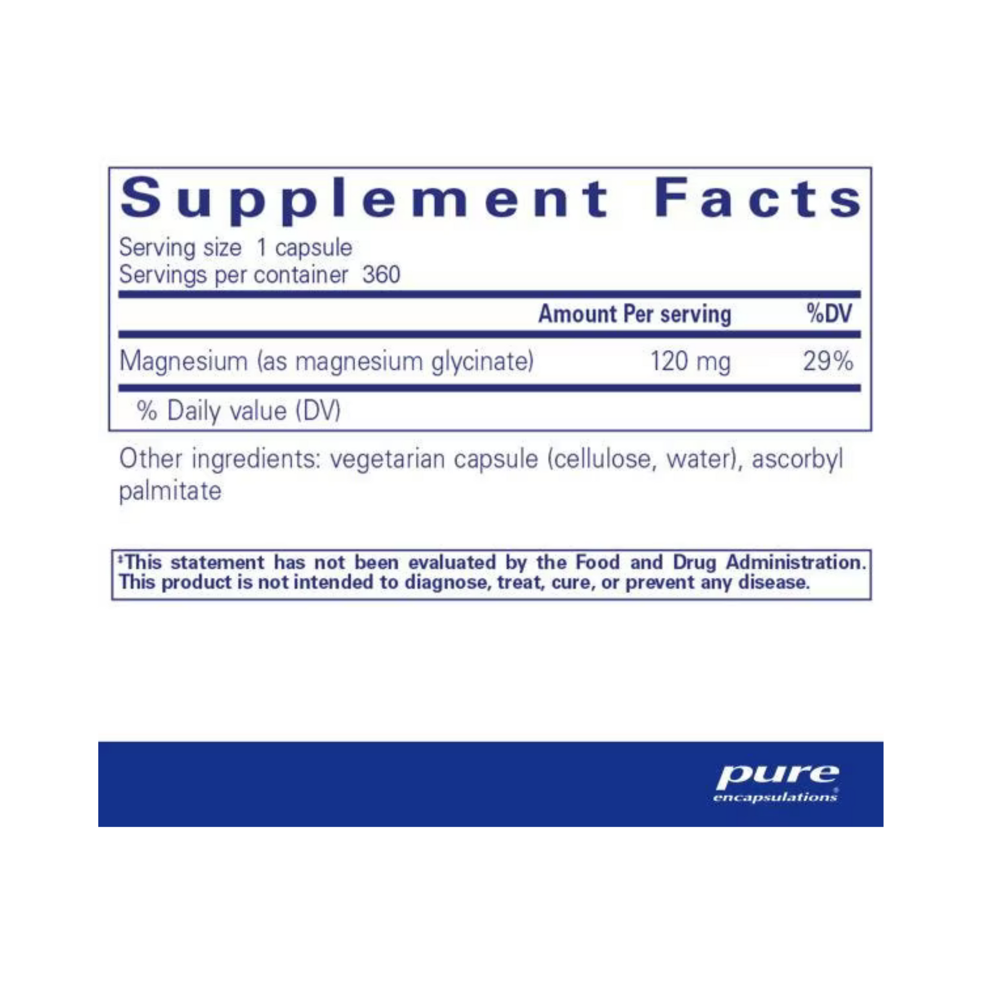 Magnesium (glycinate) is a highly bioavailable magnesium chelate, which supports the metabolism and utilization of carbohydrates, amino acids, and fats for energy. Magnesium (glycinate) helps activate enzymes for physiological functions including cardiac health.‡