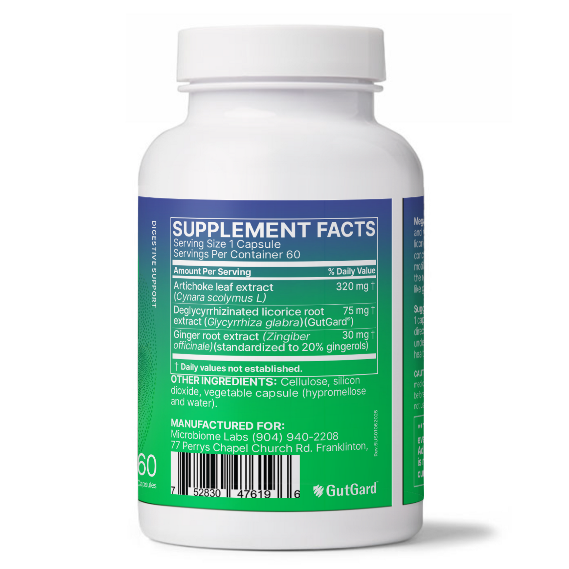 Licorice (Glycyrrhiza glabra) has a long history of use for digestive support. In Ayurvedic and Traditional Chinese practice, licorice is well-known for its ability to support the gastric mucosa. One of the most commonly known compounds in licorice is a saponin called glycyrrhizin that has been used as an emulsifier and sweetener in the food industry. However, most supplements contain deglycyrrhizinated licorice (DGL) because large amounts of glycyrrhizin have been associated with serious adverse side effects like elevated blood pressure and lowered potassium levels. Gutgard® licorice flavonoids are entirely different from DGL with respect to chemistry, composition, manufacturing, and mechanisms of action. While a classical extract of DGL does not contain any significant quantity of flavonoids, Gutgard® is standardized to contain more than 10% total flavonoids and less than 0.5% glycyrrhizin to avoid undesirable effects. More than 50 flavonoids have been identified in Gutgard® which have been shown to have beneficial activity for digestive support. Gutgard® licorice can also relieve occasional indigestion, bloating, and gas at 150mg/day.