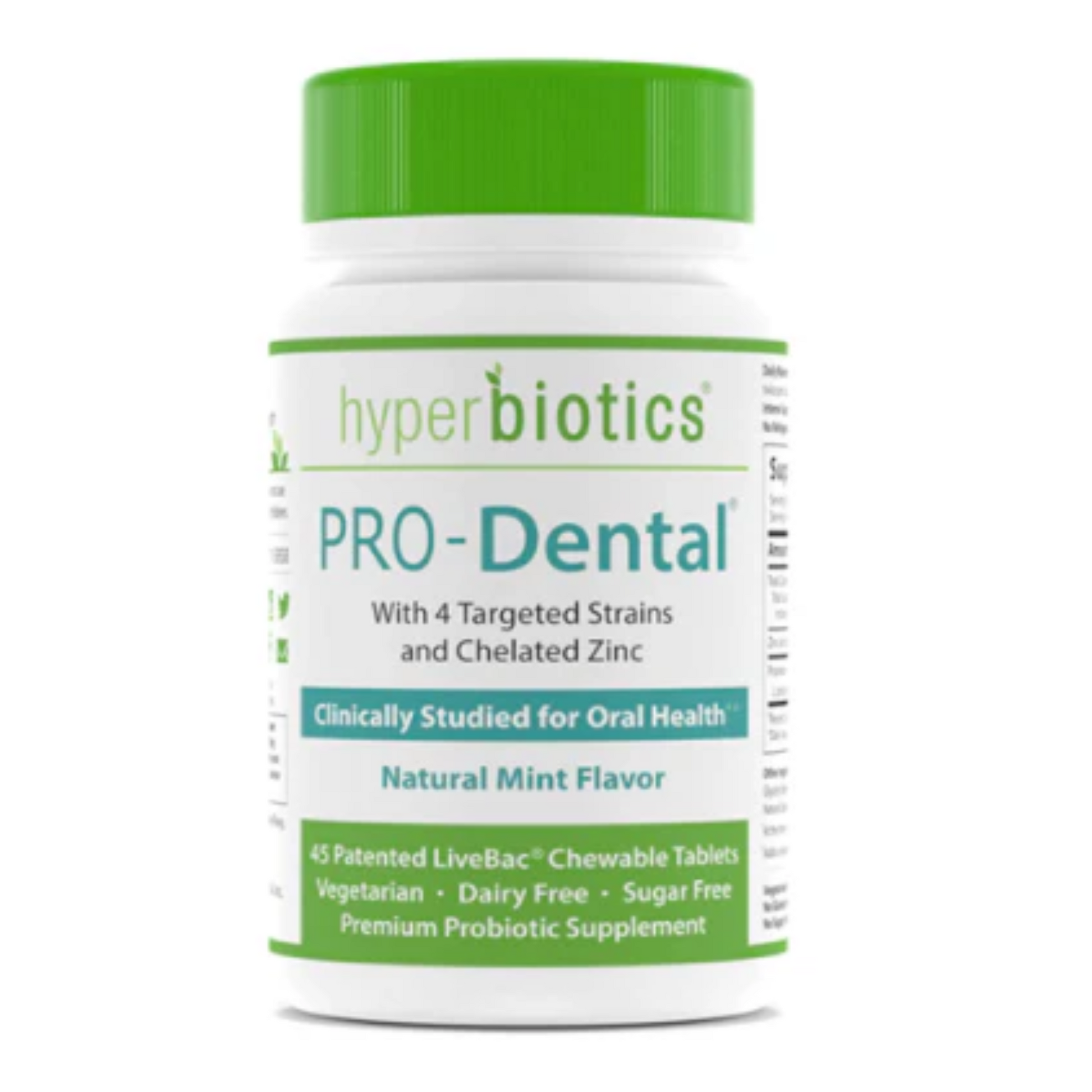 Hyperbiotics PRO-Dental Probiotic for Oral Health is uniquely formulated with 4 targeted probiotic strains to help support oral, dental and upper respiratory health.* The probiotic strains in PRO-Dental work together to create an environment in the oral cavity that helps lessen the buildup of sticky deposits that can eventually lead to problems.* These beneficial strains also help work to crowd out undesirable bacteria, helping to address the root cause of unhealthy gums, and fight bad breath at the source.*