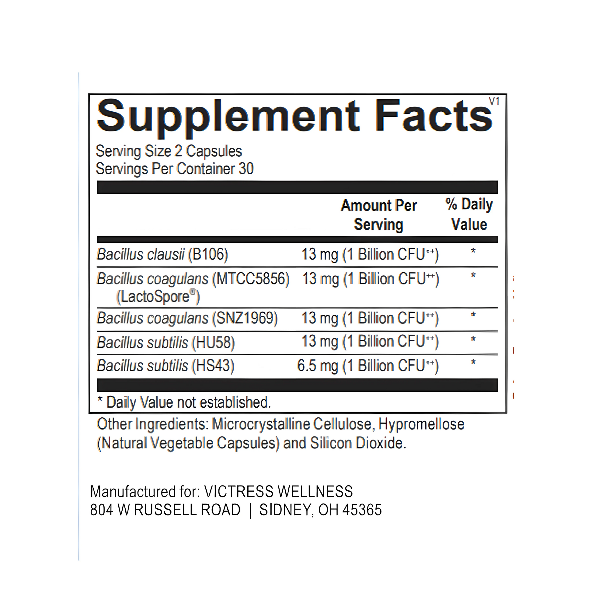 Bacillus clausii is known to support GI health, help balance intestinal microbiota, relieve occasional diarrhea, maintain immunity balance and help with vitamin synthesis.